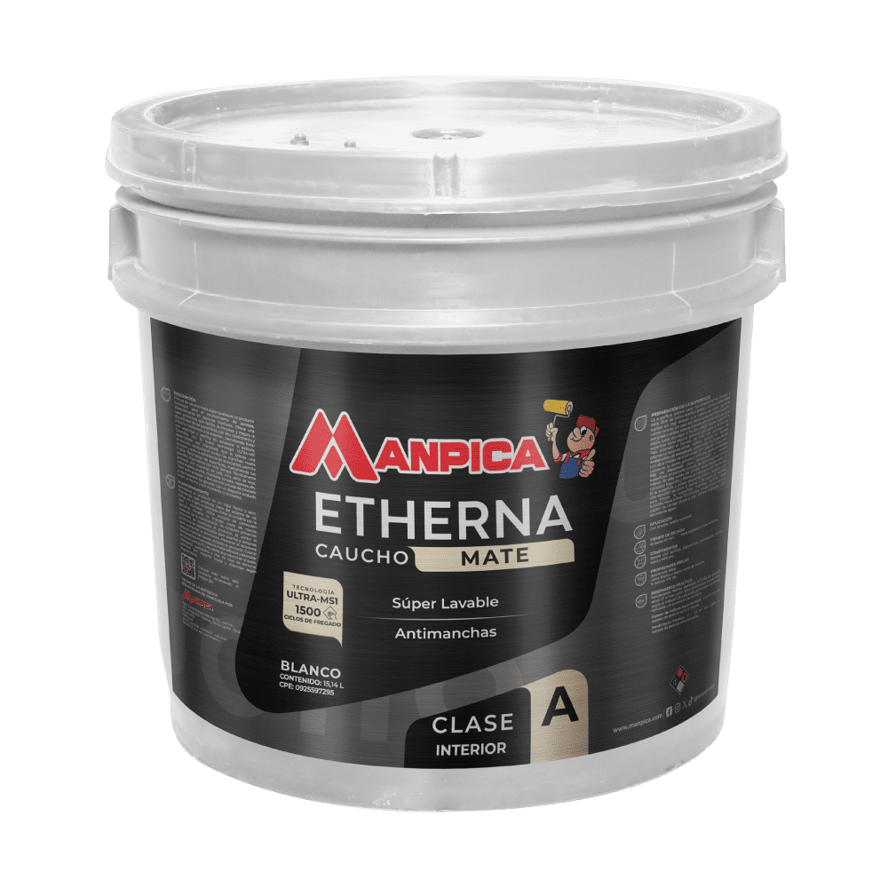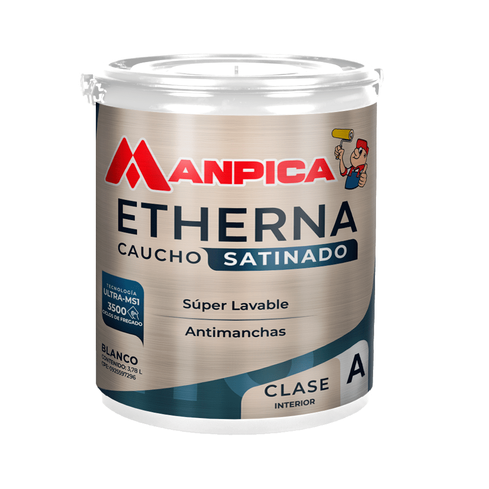Pintura de caucho satinado premium de excelente calidad súper lavable. Es un producto innovador ideal para ambientes interiores, de acabado sedoso, suave, elegante y terso. Ofrece una capa protectora que facilita la limpieza y mejora la durabilidad de las superficies, con alto rendimiento y máxima resistencia a la abrasión, permitiendo frotar con esponjas y cepillos sin deteriorar la película. Diseñada con la nueva Tecnología ULTRA-MS1 desarrollada por Manpica®, que le brinda una protección excepcional contra las manchas, repele líquidos y evita la adherencia de la suciedad. Permite limpiar fácilmente las superficies, manteniendo tus paredes impecables por más tiempo. Técnicamente probada con manchas de café, vino, salsa de soya, salsa inglesa, aceite, chocolate, tomate, mostaza, etc. Ideal para proteger y decorar superficies de concreto y mampostería en general, con un elegante acabado satinado uniforme y con excelente cubrimiento. No elimina manchas de marcador permanente.